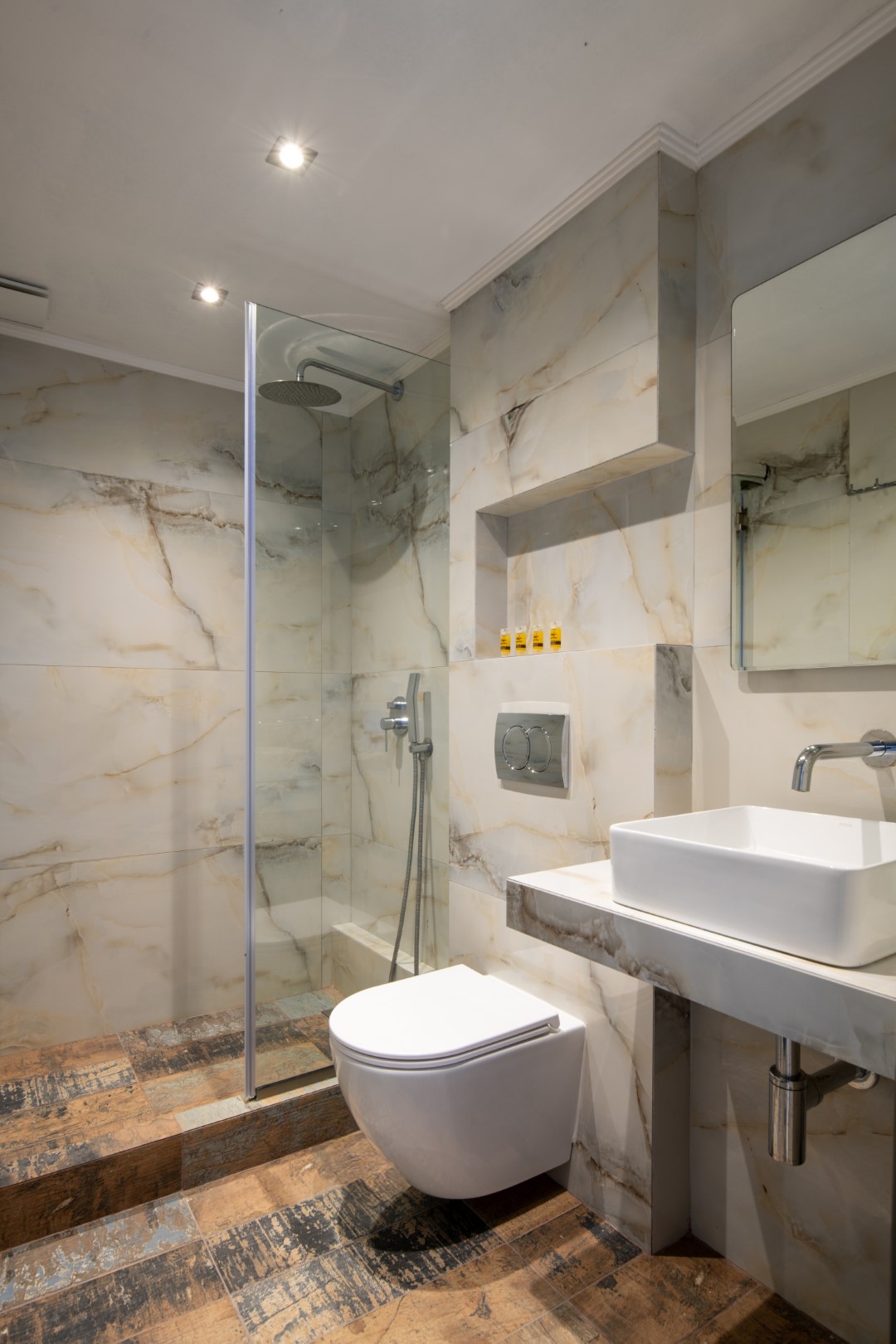 Private bathroom with crystal shower cabin